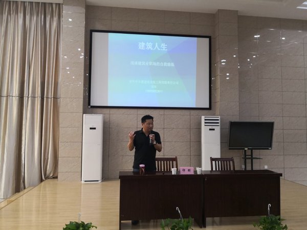 5月15日下午,建筑工程系举办“企业家进校园”专题讲座,此次讲座由安庆市东厦建筑安装工程有限责任公司总经理祁昕先生主讲,讲座的主题是“建筑人生——浅谈建筑业职场的自我修炼”。2017级建筑工程技术、工程造价专业全体同学参加了此次讲座。
