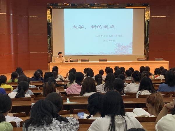9月28日晚,社会事业系主任高润霞在图文一楼报告厅作题为《大学,新的起点》新生入学教育第一场专题讲座,为该系2019级全体新生介绍大学学习生活相关情况,助力新生尽快适应融入大学校园,及早科学规划大学时光。