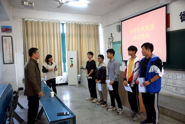 9月25日,机电工程系在1号教学楼成功举办安庆市供水集团专场招聘面试会。安庆市供水集团人力资源部总经理方隽、系分管学生工作负责同志和18级毕业班学生代表参加面试会。