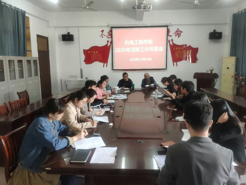 为切实做好迎接2020级新生的准备工作,机电工程学院于2020年 10月9日在1栋教学楼208会议室召开迎新工作布置会。院负责人刘磊同志出席会议,院分管学生工作同志主持会议,迎新工作小组成员及新生辅导员老师参加会议。