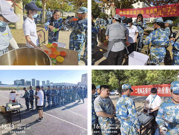 自9月17日开始,带着对绿茵场上学生的牵挂,一食堂(安徽杏林餐饮公司)和二食堂(南京梅花公司)相继给军训的学子们免费提供清凉解暑的绿豆汤和酸梅汤,为炎日下开展军训的学生和教官提供贴心服务。
