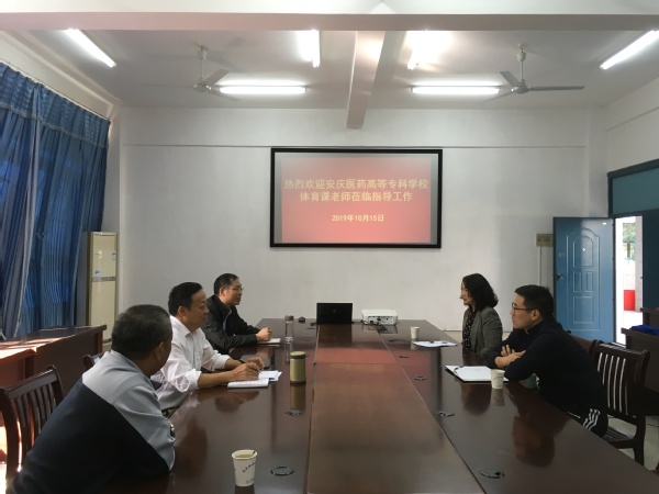 10月15日上午,安庆医药高等专科学校临床医学系党总支书记陈琪一行来我院公共基础部进行体育工作交流学习。相关同志参加了交流会。