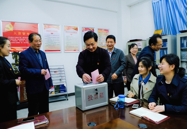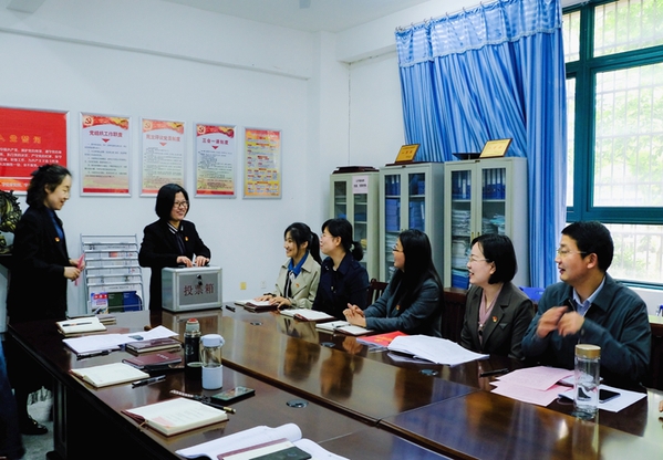 经全体党员投票、现场计票,6位同志当选为两个教师党支部新一届支部委员会委员。在随后召开的支部委员会第一次全体会议上,选举产生了储可可同志担任第一党支部书记,王文婷同志担任第二党支部书记,同时对支部委员做了工作分工。