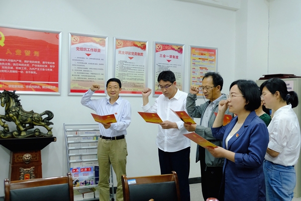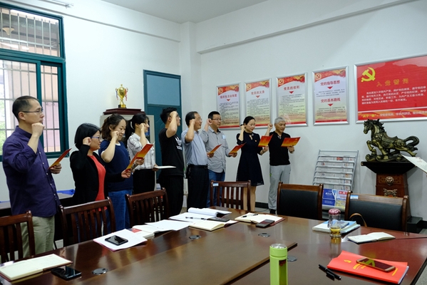 选举结束后,全体党员重温入党誓词,集体过政治生日。