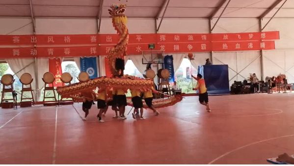 成绩是汗水的结晶。永利官网舞龙队自2022年组建以来,一直在坚持训练,积极备赛,先后获得省级以上奖项5个。为备战本次赛事,在教练温国旗老师的辛苦指导下,舞龙队开展了为期6个月的训练。在暑假集训期间,指导教师搬到学生宿舍,与学生同吃同住,照顾学生的饮食和日常作息;学生克服生活上的诸多不便,忍受高温留校训练,每天训练时间8小时以上,很好地增强舞龙技艺和身心素质,为赛场上坚定而自信的表现打下扎实基础。