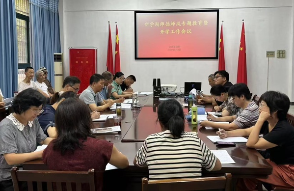 为贯彻落实校党委新学期开学工作会议精神,做好新学期工作部署,9月3日上午,公共基础部在三号教学楼106会议室召开了2024-2025学年度第一学期师德师风教育暨新学期开学工作会议。党总支书记、主任张林主持了会议,会议报告上半年和暑期工作、开展师德师风学习教育和部署新学期工作,部门全体教职工参加了会议。